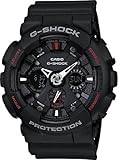Casio Mens XL G-Shock - Ana-Digi - All-Black Design - Red Accents - World Time
